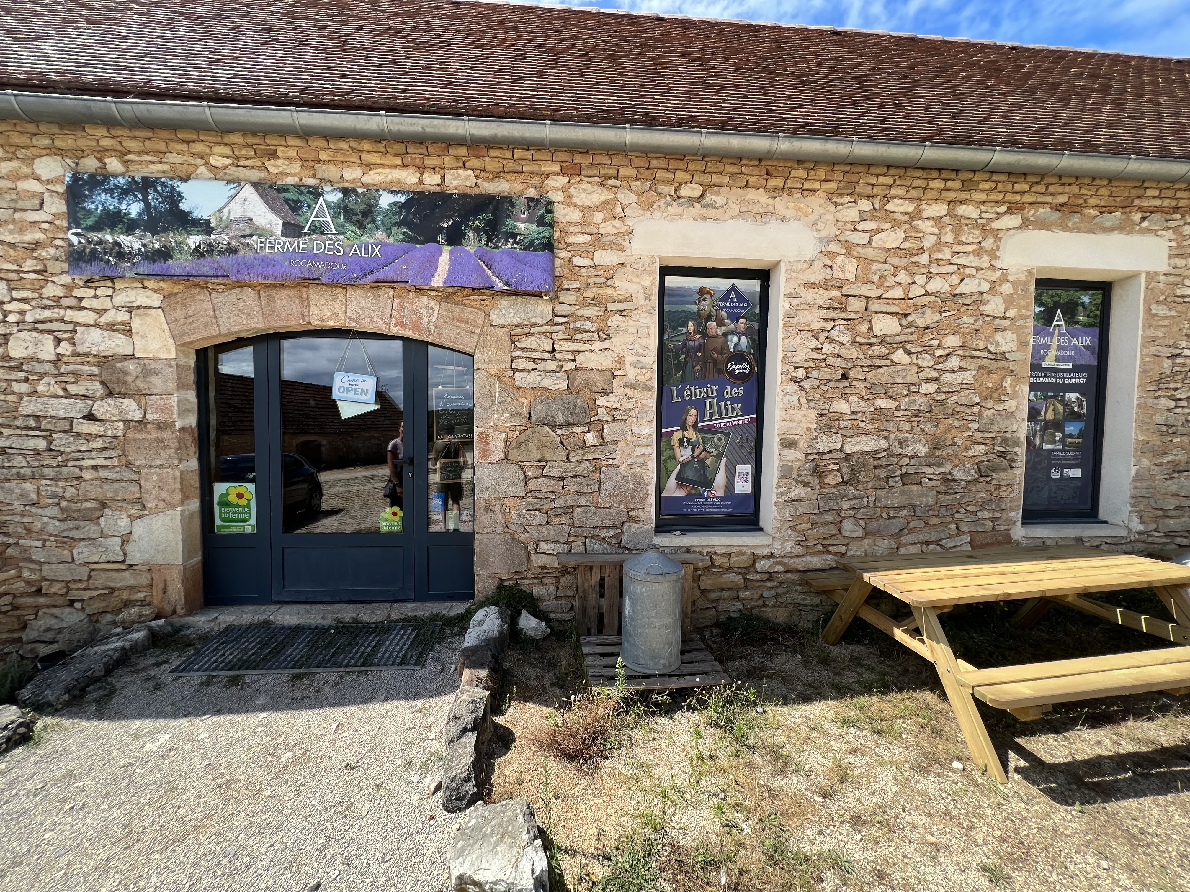 Très belle découverte. La boutique est superbe, l accueil sympa et les produits super top ! (Mention spécial au miel de lavande). Explore game à faire en famille, on s est bien amusé. Petite déception toutefois, la boutique nous incite à nous rendre à leur restaurant pour terminer ce bon moment. Nous sommes donc allés au restaurant avec enthousiasme qui se trouve à quelques km pour déjeuner mais là rien à voir, douche froide: accueil très glacial pour nous dire que c était complet (malgré les tables vides à 13h30). Nous resterons donc sur ce bon moment passé à la ferme d Alix.